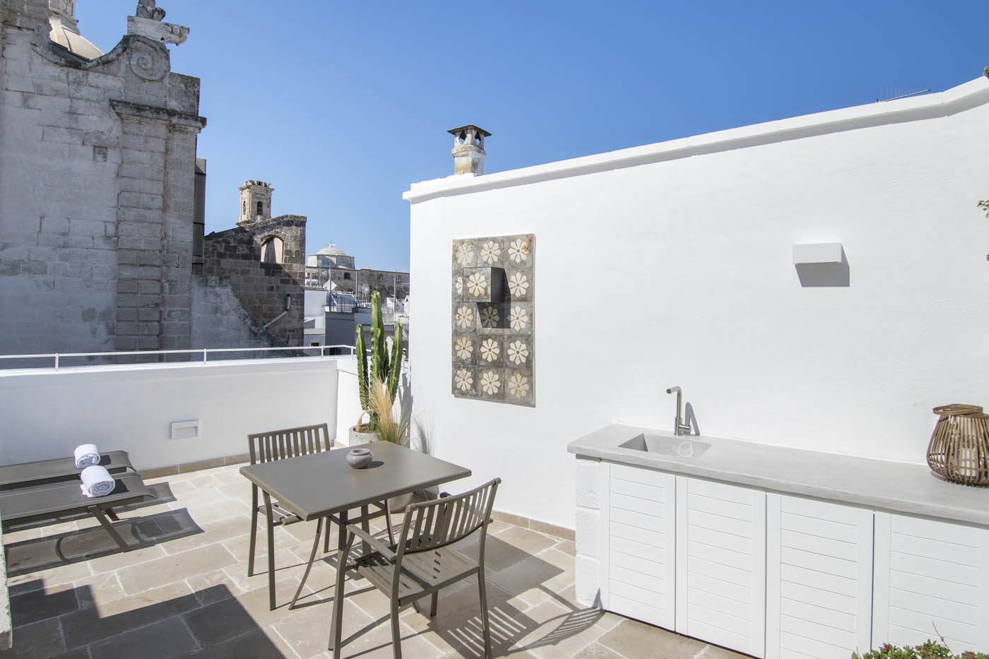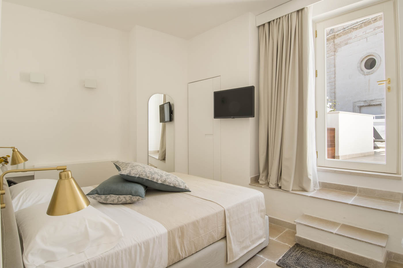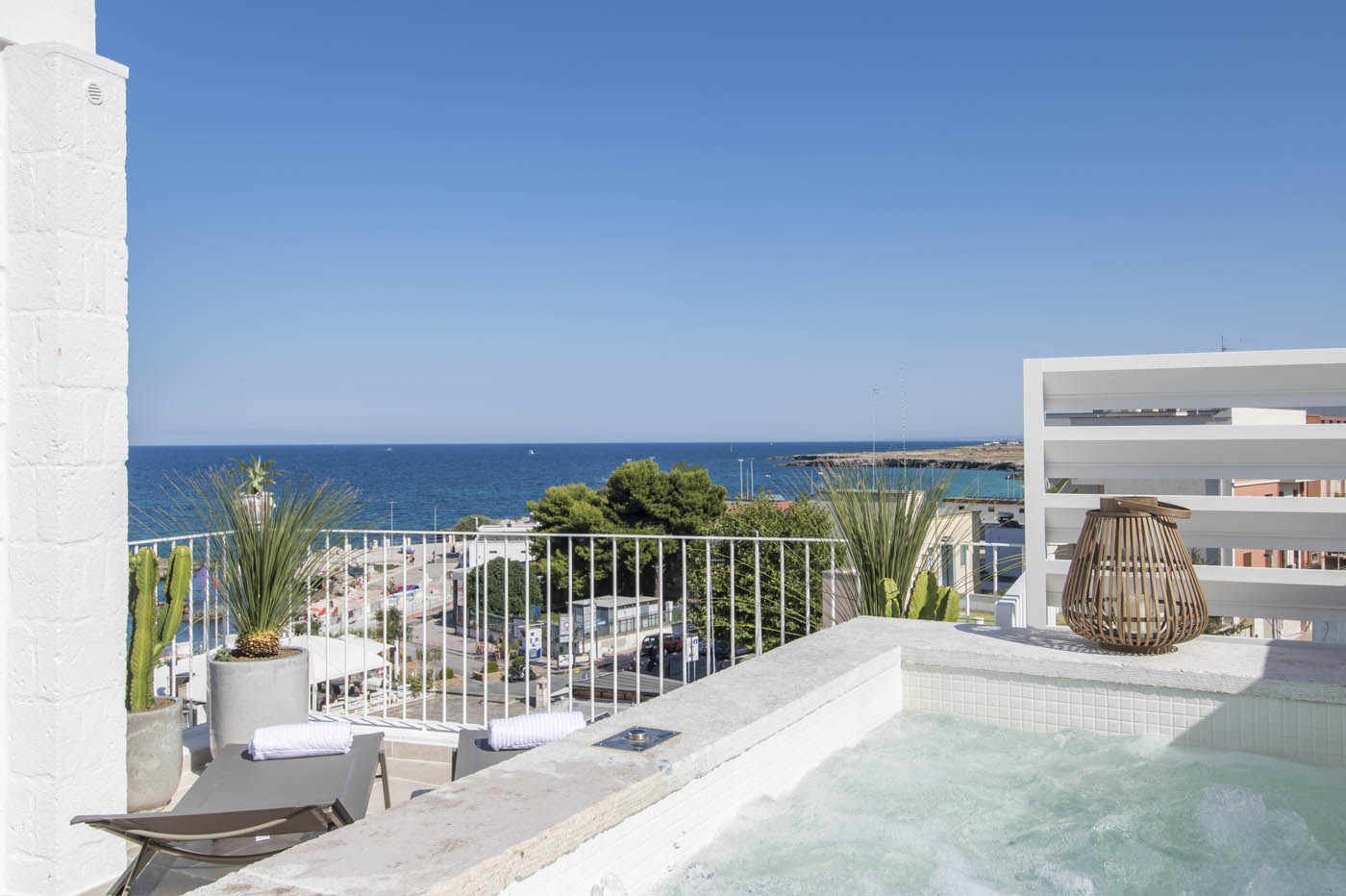 Al quarto piano del palazzo, le camere Superior offrono un’esperienza unica: una terrazza privata con vasca idromassaggio e solarium per momenti di puro incanto.